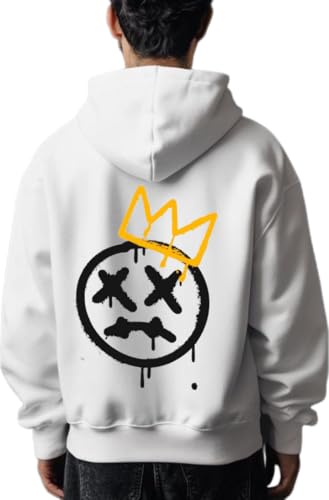 Generic - Graffiti Smiley Face Crown كنزة ذات قبعة ظهر أبيض