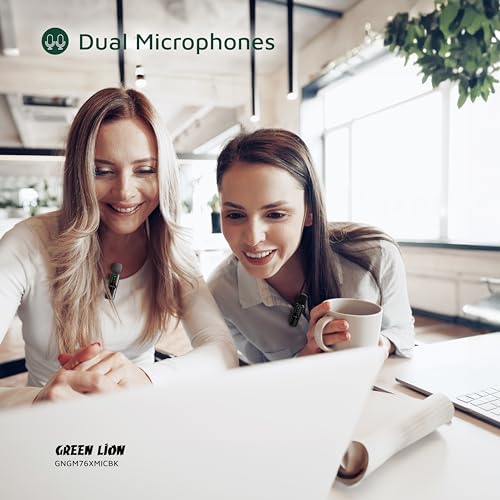 Green Lion - ميكروفون طراز GM-76X مزدوج 3 في 1 نطاق نقل 20م عمر بطارية 5 ساعات بطارية 65 مللي امبير/ساعة وضع صدى، جودة صوت عالية الدقة HD زمن استجابة منخفض بمنافذ لايتنينج وUSB نوع C ونوع A من جرين ليون لون أسود