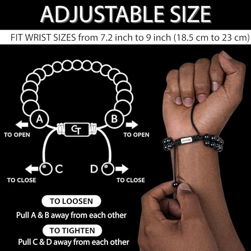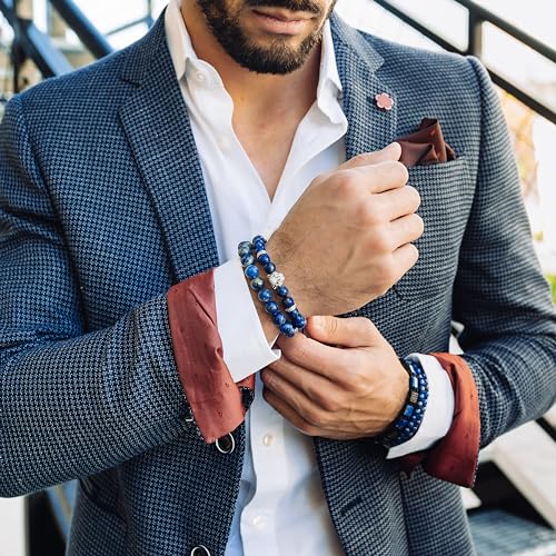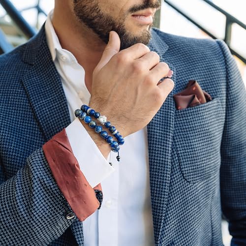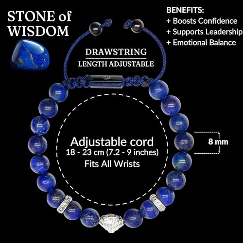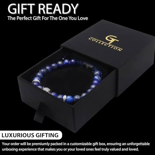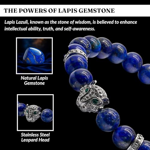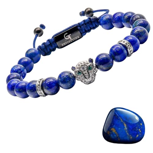 GT collection - GT collection Men's Energy Bracelet with Gold Leopard Stainless Steel Bead, Adjustable Natural Gemstone Onyx Bracelet for Men, from 7.2 inch to 9 inch, Stone, Lapis Lazuli
