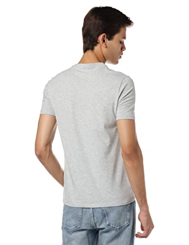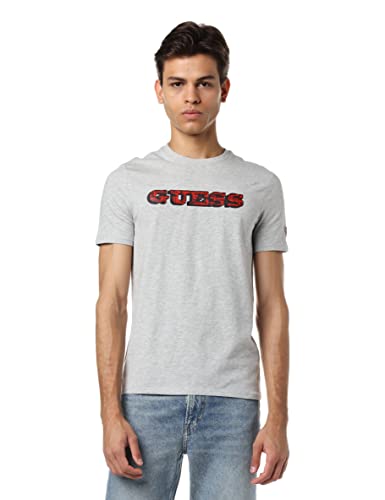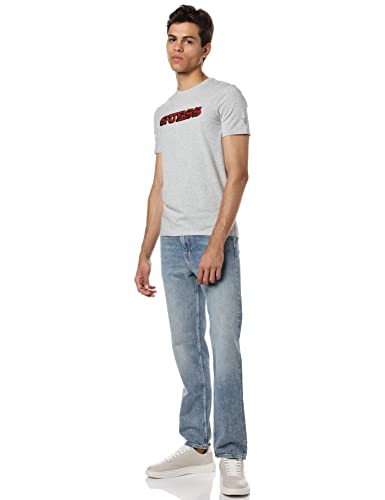 GUESS - تيشيرت رجالي بشعار امامي من جيس, رمادي فاتح, L