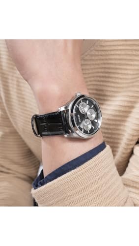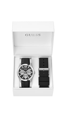 GUESS - Guess Zen Multi-function Analog Watch Box Set for Men, 42 mm Case Width, Silver Tone/Black, Silver Tone/Black, Classic