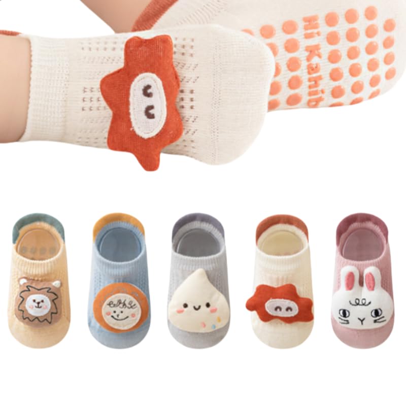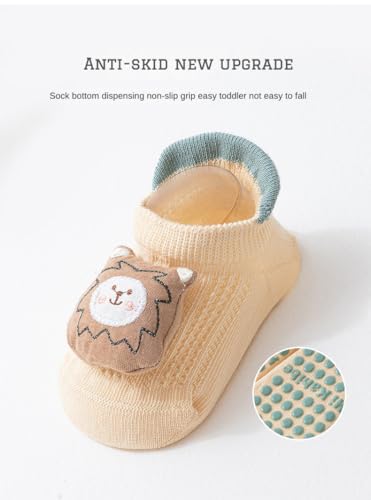 GuLiNiao - Baby Cotton Socks with Non-Slip Grips | OEKO-TEX Certified A-Class | 3D Cartoon Design | Unisex Toddler Ankle Socks for Spring/Summer/Fall