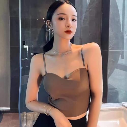 GuLiNiao - Ice Silk Sculpt Padded Camisole – Women's Ice Silk Padded Slim Shoulder Top | Soft – Elastic – Cool to Body | Beautiful Shape – Excellent Support – Suitable for Outdoor & Sports (Grey-1)