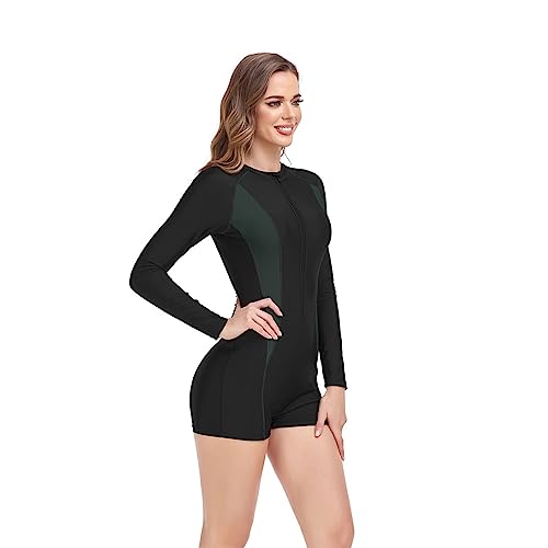 GuLiNiao - مايوه بأكمام طويلة وتغطية كاملة للحماية من الطفح الجلدي للنساء، بدلة سباحة من قطعة واحدة واقية من الأشعة فوق البنفسجية مع بطانة قابلة للإزالة وتصميم بسوستة للغوص مناسب لشواطئ مصر من جولينياو