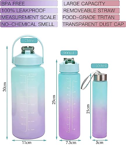 - Package Included : 3 Pcs x Time Marker Water Bottel.(2000ML-100ML-350ML) Color: Multicolor