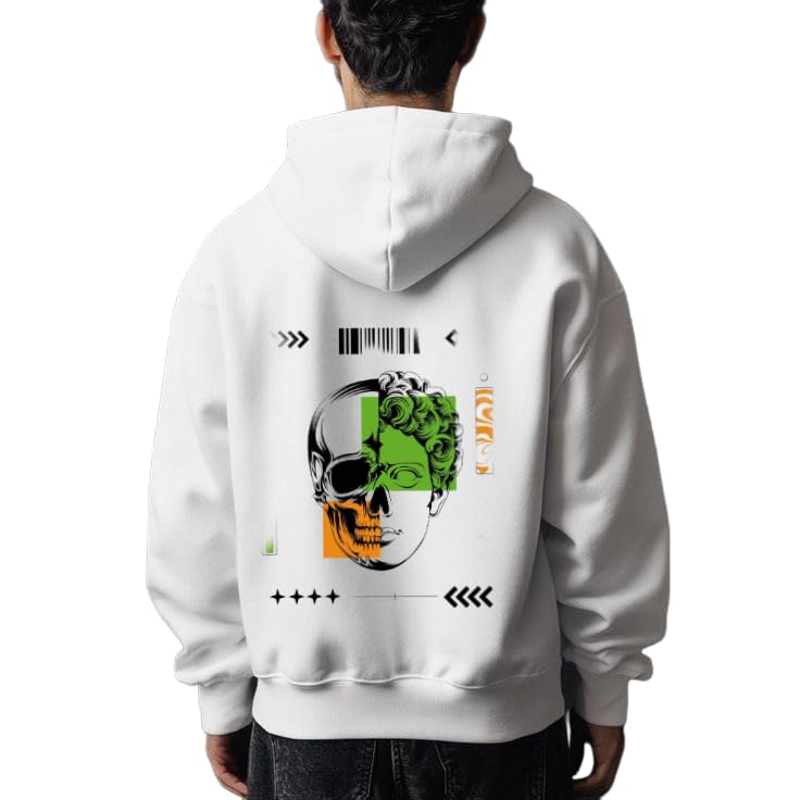 Generic - هودي بطبعة نصف جمجمة ونصف تمثال من الخلف بلون ابيض