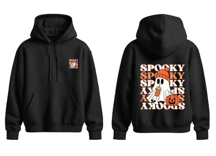 Generic - Halloween Ghost Graphic Hoodie, Black Cotton Sweatshirt, Spooky Pumpkin Print, Pullover with Front Pocket(L)