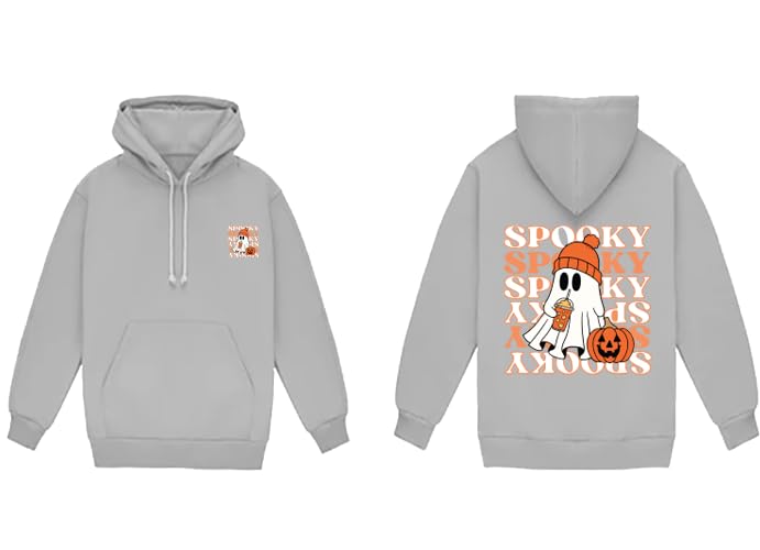 Generic - Halloween Ghost Spooky Print Pullover Hoodie, Grey, Front Pocket Design(2XL)