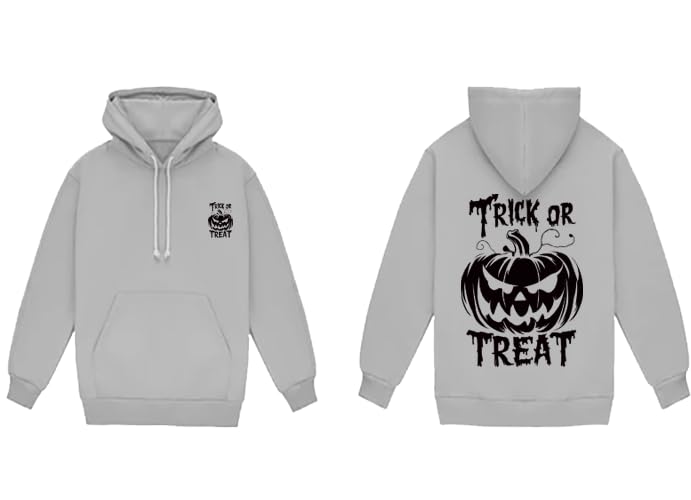 Generic - Halloween Pumpkin Hoodie, Grey Pullover Sweatshirt with Trick or Treat Design, Front Pocket(S)