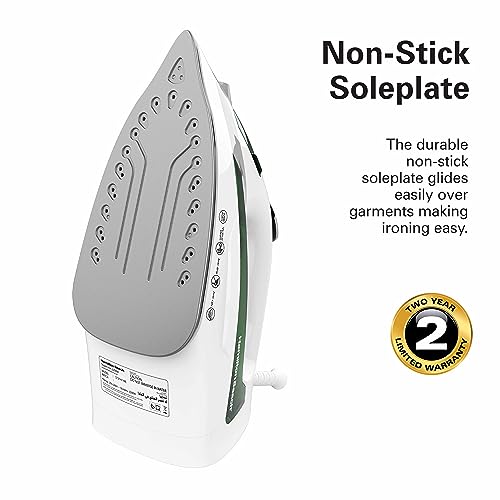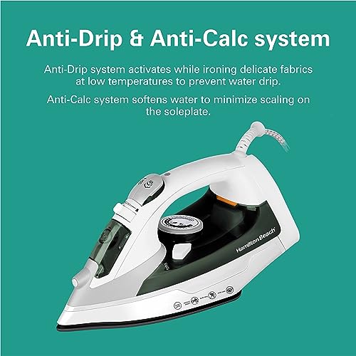 Hamilton Beach - مكواة بخار 2200 وات من هاملتون بيتش، خاصية إطلاق البخار عموديًا، تدفق بخار 23 جرام/دقيقة، بخاخ ماء، جاف و3 إعدادات للبخار، قاعدة غير لاصقة، مضادة للتنقيط، مكافح للكلس، تنظيف ذاتي، موديل ST2747-ME