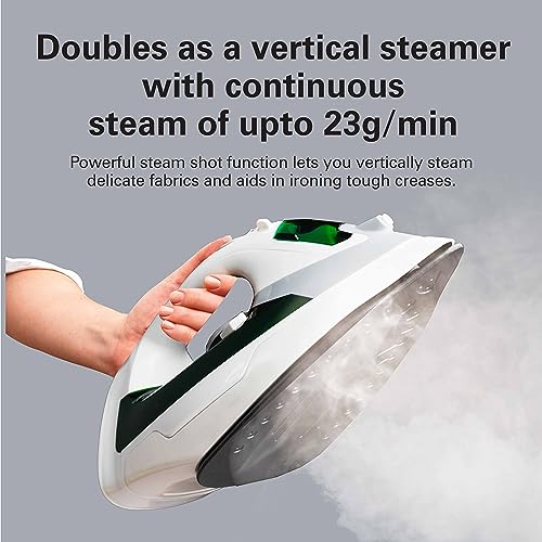 - يمكن استخدامه كمكواة بخار عمودية مع بخار مستمر يصل إلى 23 جرام/الدقيقة - تتيح لك وظيفة إطلاق البخار القوية بخار الأقمشة الحساسة عموديًا وتساعد في كي التجاعيد الصعبة.