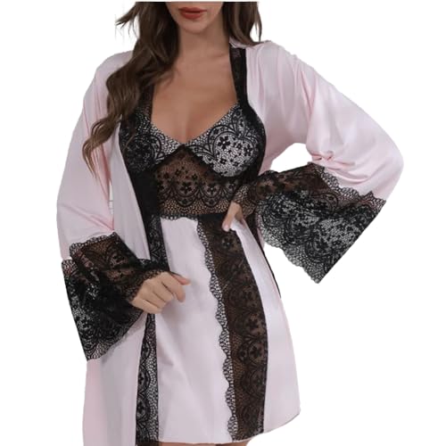 هنادي - Hanady Women Chic Comfort Lingerie Set with Robe - One Size - Tulle & Lace Fabric