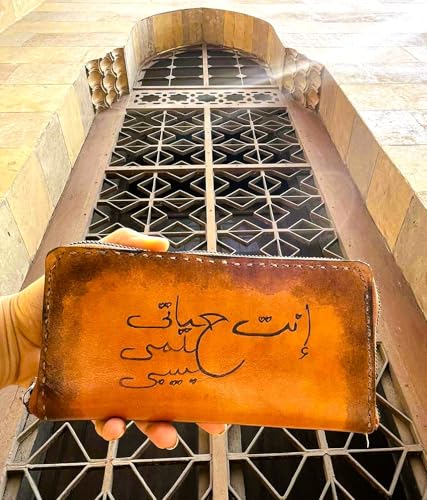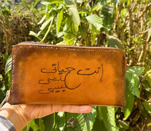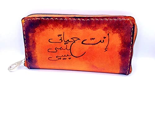Generic - بورتفيه جلد طبيعى كبير HAND ميد مع كتابه (كنت حياتي حلمي حبيبي) بالحرق على الجلد,ومقسم 15 جيب