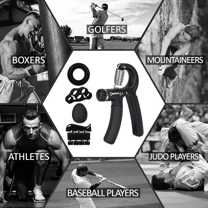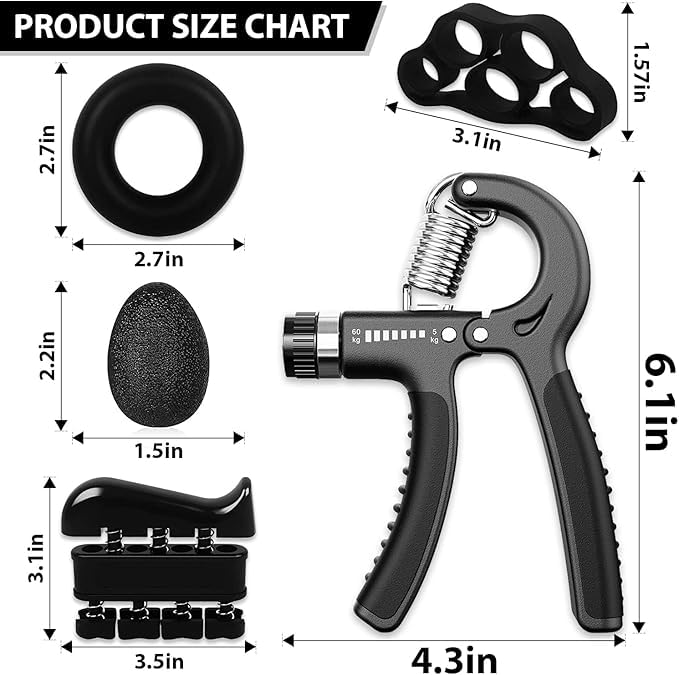 - PACK OF 5 – Build up your grip strength with this 5 piece workout set. You get a hand gripper, resistance power ball, hand strengthener ring, hand and finger exerciser, and a finger stretch resistance band