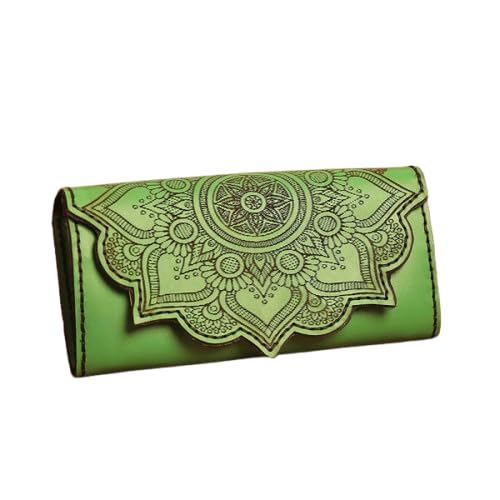 Generic - Handcrafted Leather Wallet with Mandala Design, Green, Long Style