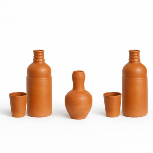 Generic - Handmade Natural Clay Pottery Bottle Set - Elegant Design for Decoration and Serving Drinks