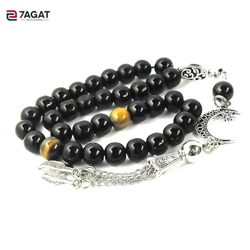 Generic - Handmade Rosary - a unique combination of Agate Stones with a Natural stone from your choice For Daily Meditation, Prayer, Positivity, Peace, Gift for any occasion. (Agate, Brown Tiger Eye)