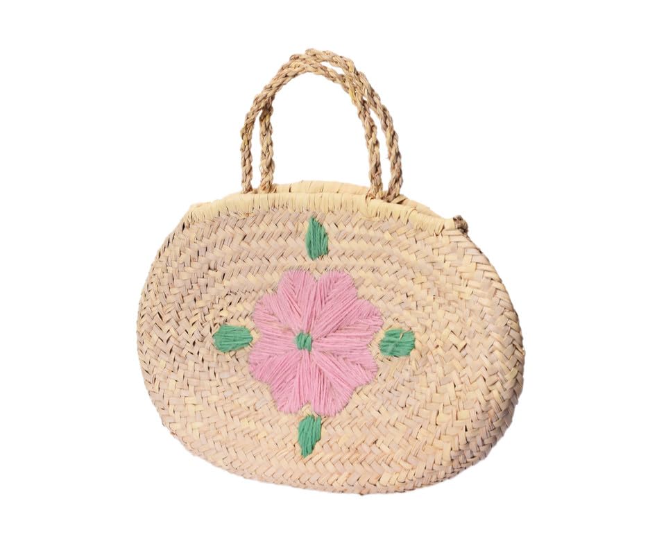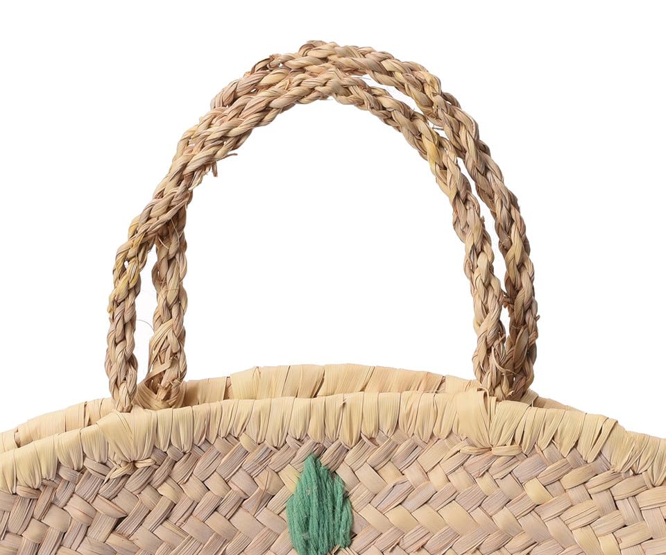 Nubia Egypt - Handmade Women's oval wicker bag embroidered with colorful wool thread and braided wicker handle