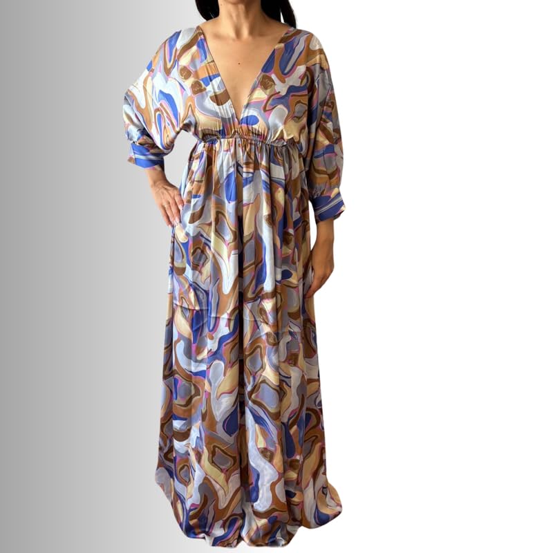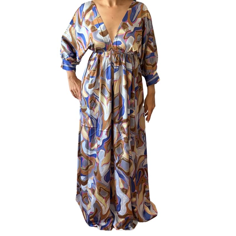 Hanzo - فستان دليلة طويل فضفاض مطبوع من هانزو