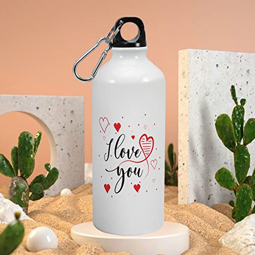 Happu - زجاجة مياه شرب من الالومنيوم مطبوعة بطابع عيد الحب - هدية للحبيب، هدية للصديقة والصديق والزوجة والزوج والزوجين والذكرى السنوية، 2006-AB-600_A، من هابو