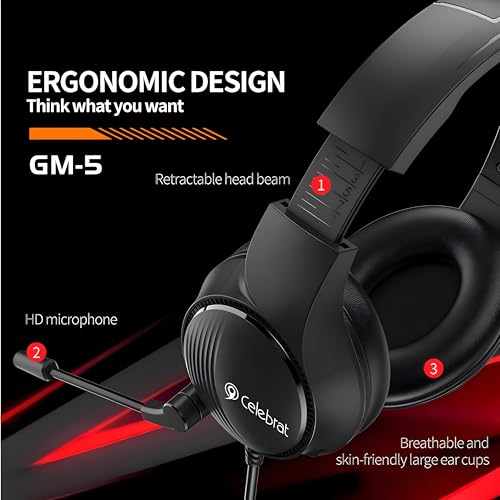 Generic - هيدفون جيمنج سلكية بصوت محيطي و ميكروفون HD ودوران 360° - كابل بطول 1.8م - تصميم مريح للرأس - سيليبريت GM-5