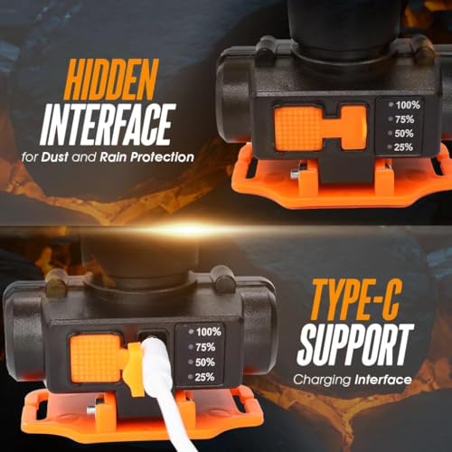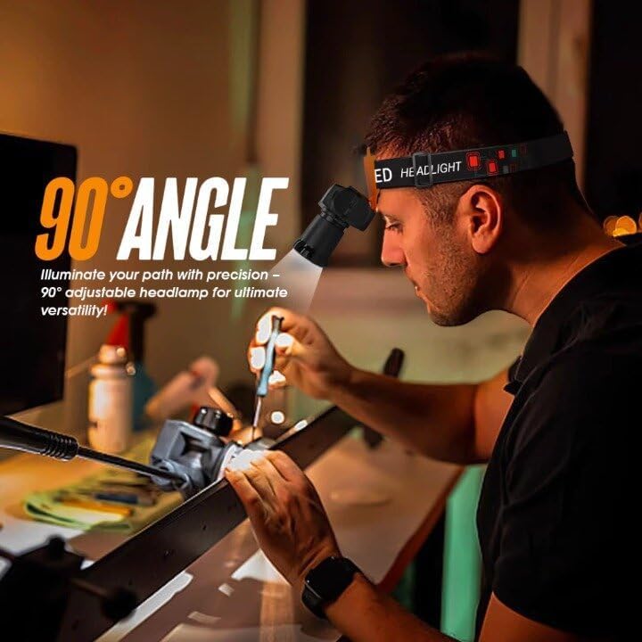 - Head design: With a flexible and adjustable head strap allows the flashlight to be securely and comfortably, allowing hands to be fully free while working, moving, or various night activities.