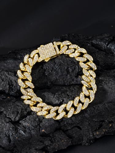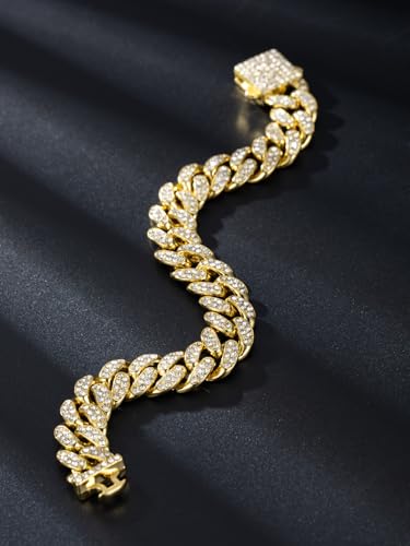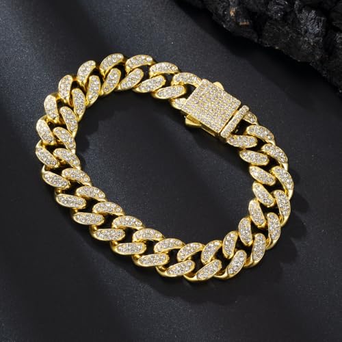 FRIDAYIN - Hip Hop 13mm spring buckle Cuban bracelet alloy full diamond thick style suitable for men and women