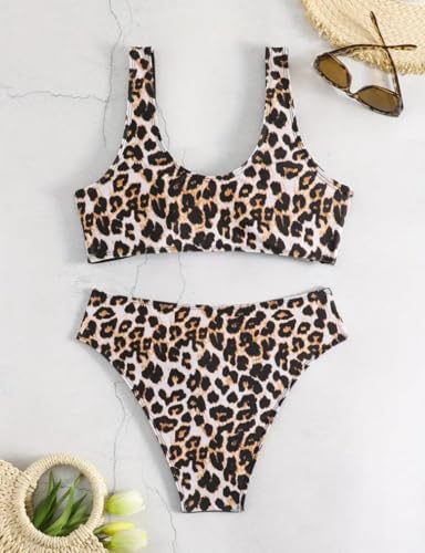 هنادي - بكيني قطعتين بتصميم عصري - خامة زبدة كوري ليكرا بجودة عالية، بنقشة التايجر الجذابة، موديل HN 6037, One Size