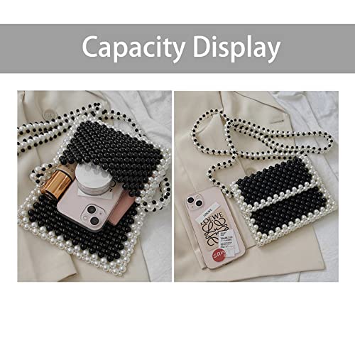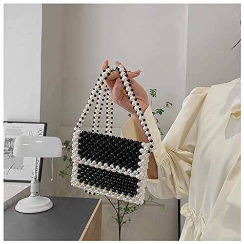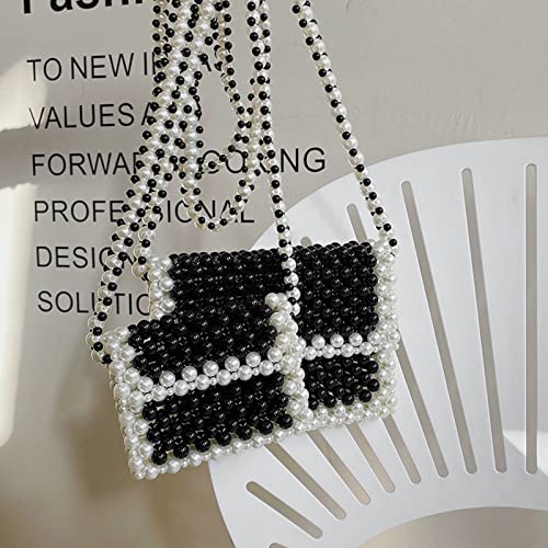 hogoo - Luxury Pearl Bag Beaded CrossBody Shoulder Bag Chain Purse Bag Personalized Ladies Square Handmade Bags Women's Clutches for Wedding Party Bridal Party Gift for Girls Women, Black