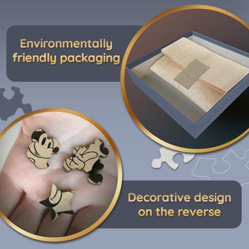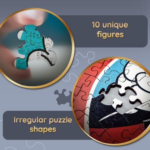 - قطع أحجية غير منتظمة الشكل وما يصل إلى 10 شخصيات أحجية فريدة ترتبط بعالم ميكي ماوس. سيحظى أي محب للبازل بتقدير الزخرفة على الظهر