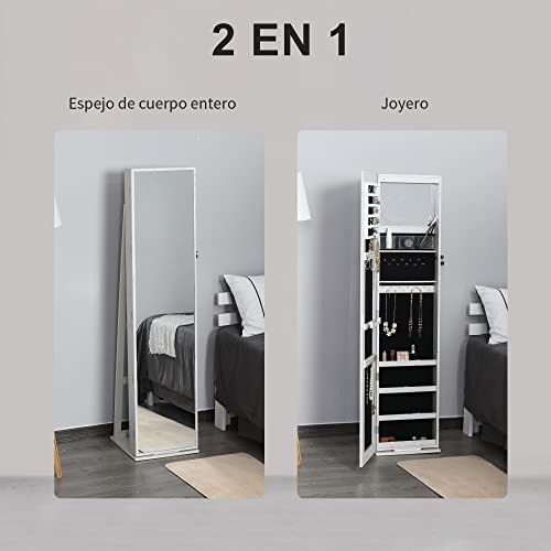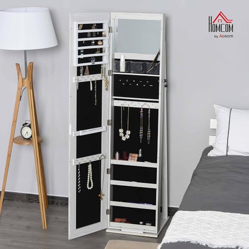 - JEWELRY BOX WITH LED LIGHTS - This HOMCOM full length mirror jewelry box with stand is the perfect way to organize all your jewelry and accessories. Has a small mirror inside with LED lights
