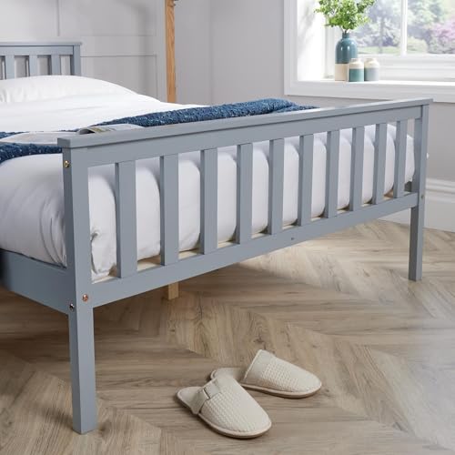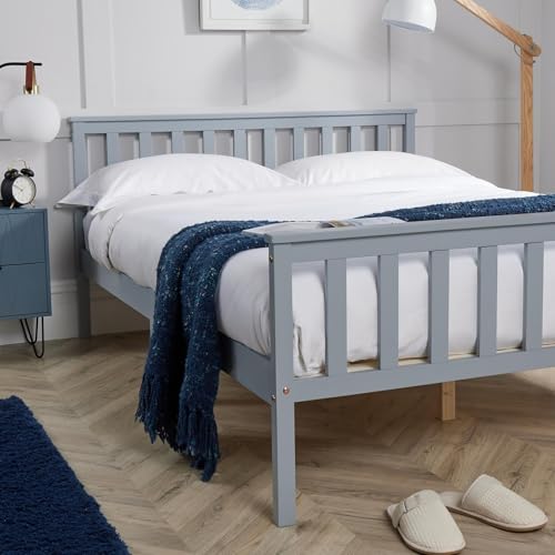 Home Source - سرير خشبي رمادي 4 قدم 6 قطع من خشب الصنوبر الصلب عالي الجودة من هوم سورس، مزدوج