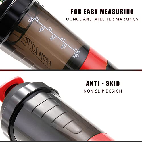 - السعة والأقسام - بسعة كبيرة 22 اونصة (علامات قياس تصل إلى 16 اونصة)، يتضمن كوب الخلط هذا 3 مساحات تخزين إضافية لتخزين مكملات ما قبل التمرين وبعده بشكل مريح.