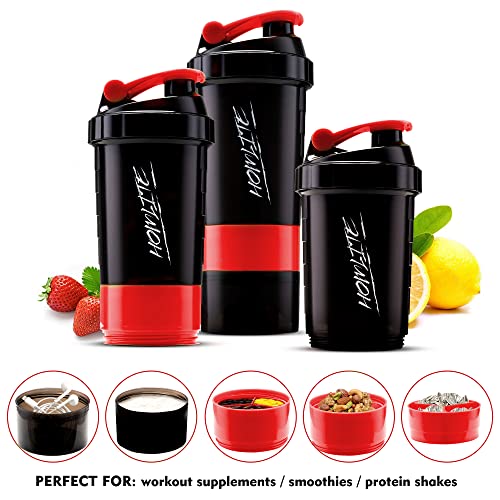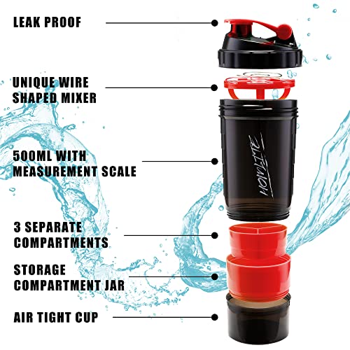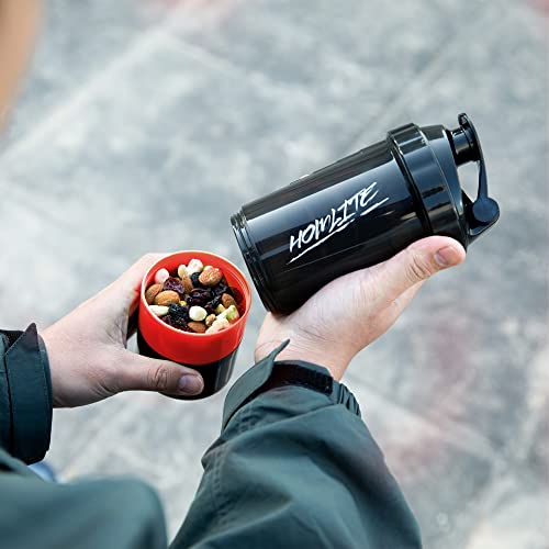 Homlite - زجاجة خلط البروتين - 3 طبقات غير قابلة للانزلاق مانعة للتسرب مع حجرة تخزين المكملات الغذائية وحبوب الدواء احمر ستانلس ستيل