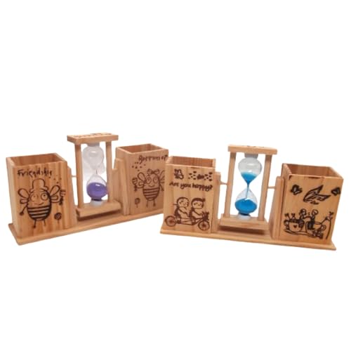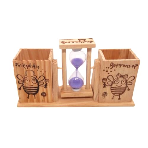 Generic - Hourglass and Pencil Case 2 Compartments, Clock and Pencil Case for Office and Home Decor Wood