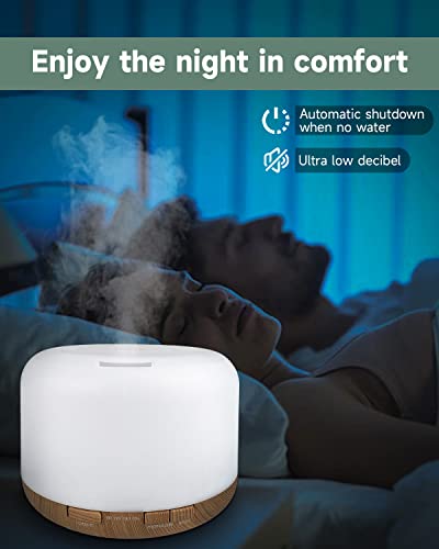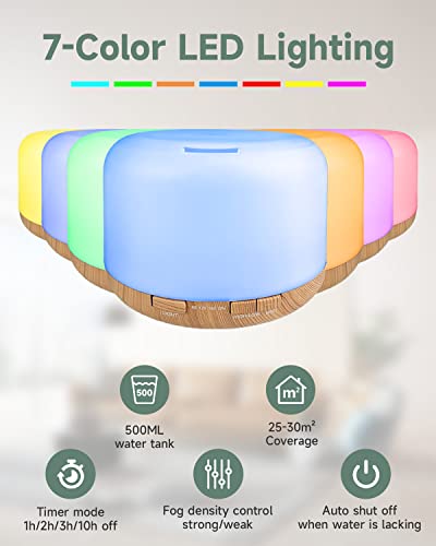 humpun - Essential Oil Diffuser, 500ML Aromatherapy Oil Diffuser for Home, 7 LED Colour Changing Air Diffuser Essential Oils, Timer Setting and Waterless