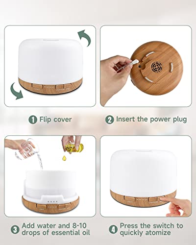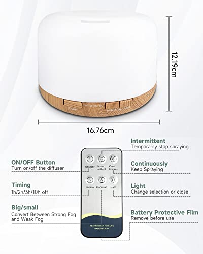 - 500ML Larger Capacity: This ultrasonic essential oil diffuser has a large and easy to clean 500ml water tank, which is 67% larger than normal. It is an amazingly versatile aromatherapy device unlike any other you have ever used. Very great for large rooms. Suitable for use in bedrooms, living rooms, home, offices, yoga studio, salons, spas, etc.