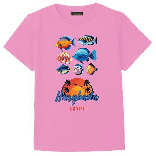 Generic - تي شيرت بتصميم سمكة استوائية من الغردقة مصر، قطن بينك، تصميم عطلة الشاطئ للاطفال من سن 3 الى 12 سنة