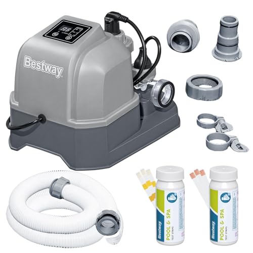 - Uses salt to produce 6g of chlorine per hour to keep the pool clean while being gentle on skin, eyes and hair