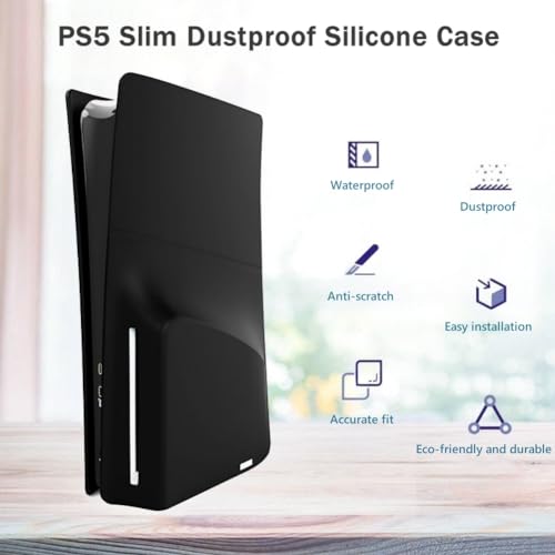 Hzxkqmil - Silicone Skin Cover for PS5 Slim Console, Protective Case Dustproof Anti-Scratch Faceplates Shell Soft Silicone Sleeve for PS5 Slim Disc Edition (Black)