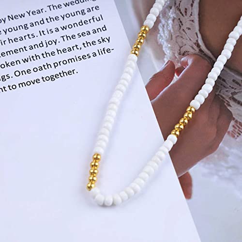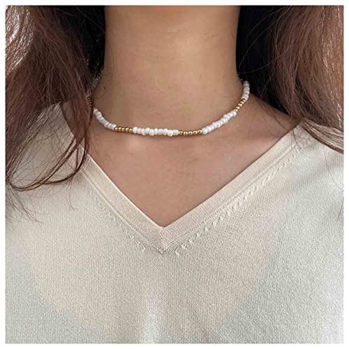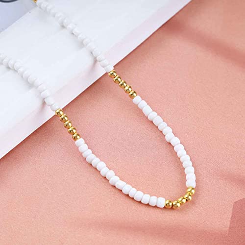 Iaceble - Boho Beaded Choker Necklace White Gold Beaded Choker Necklace Seed Bead Necklace Chain Beach Short Beads Necklace Jewelry for Women and Girls