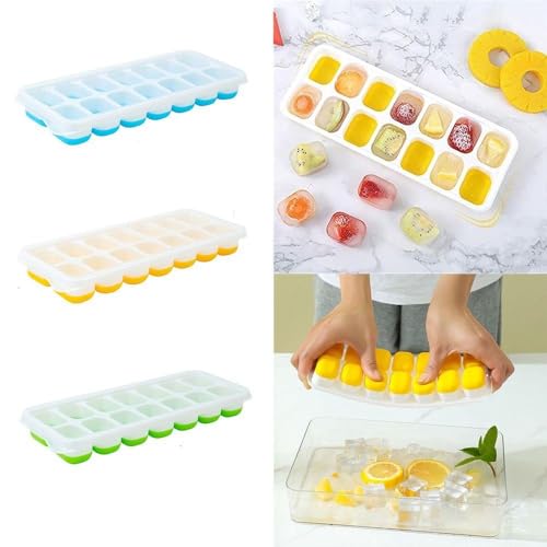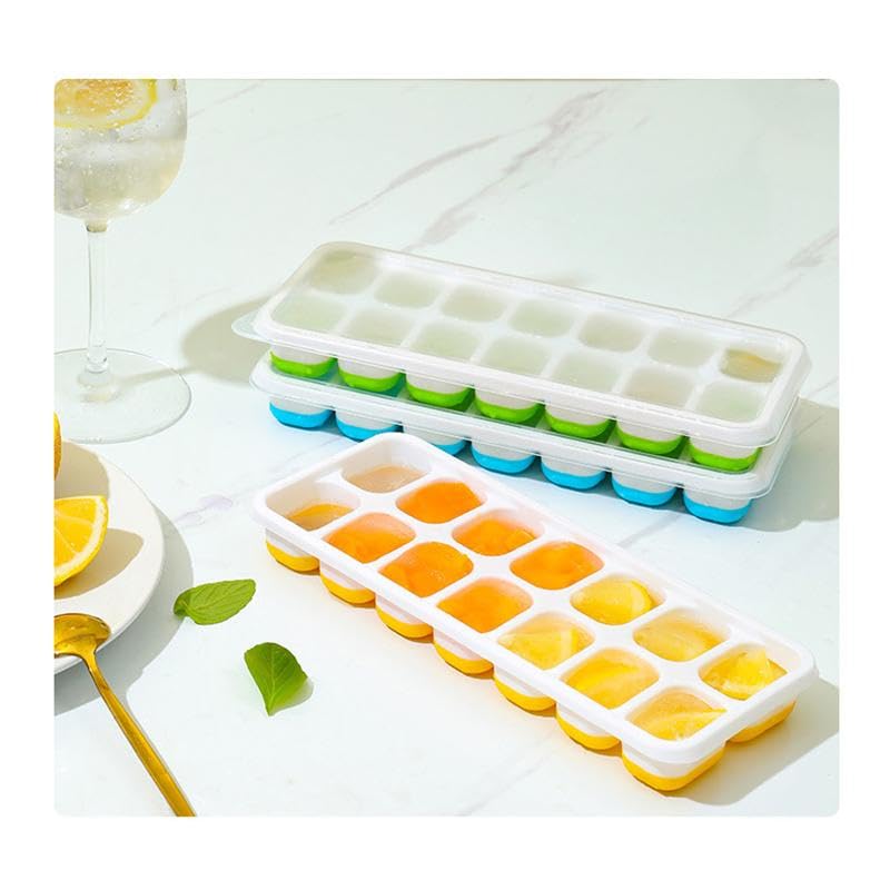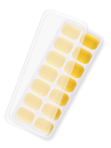 Generic - قالب مكعبات ثلج بغطاء قابلة للتكديس مصنوعة من البلاستيك والسيليكون لتسهيل الفك، مناسبة لتحضير الكوكتيلات، 14 مكعب، لون أصفر