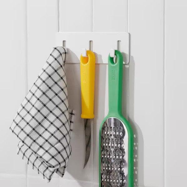 - سعة تخزينية متعددة الاستخدامات: ثلاثة خطافات متينة توفر مساحة تعليق مريحة لأدوات المطبخ أو المناشف أو لوازم التنظيف أو ملحقات الحمام.