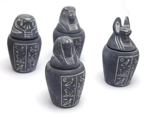 immatgar - immatgar Pack of 4 pharaonic Egyptian Jar Figurine Storage Box Statue Egyptian souvenirs gifts Inspired Gift from Egypt (Gray - 6.5 CM Long)