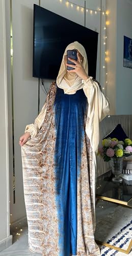 Generic - إسدال صلاة واستقبال نسائي قطيفة فرنساوي مستورد عالي الجودة - تصميم ملكي "فراشة" مزين بنقوش ذهبية - (Free Size) يلبس حتى 130 كجم