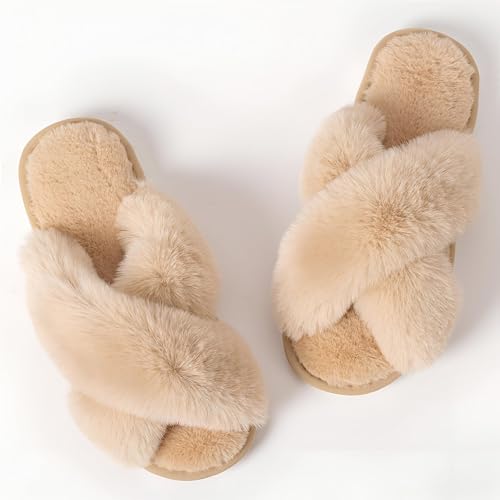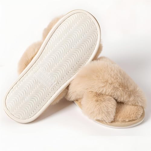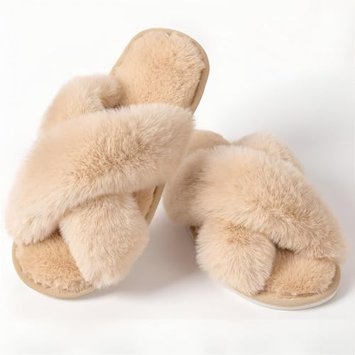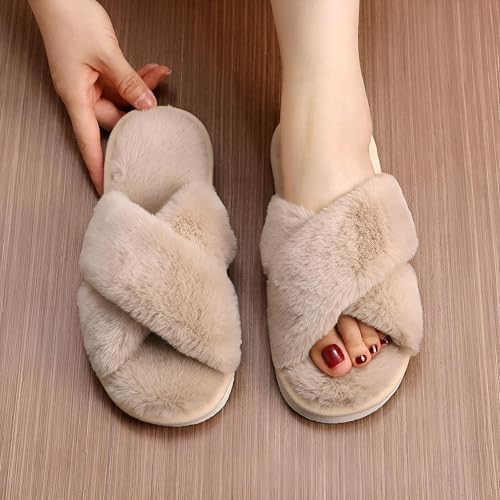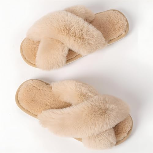 Generic - Indoor Slippers - Plush Cross-strap Design for Women, Open Toe Comfort Footwear for Home Use, Cushioned and Soft for Relaxed Indoor Comfort (Size 38)