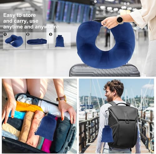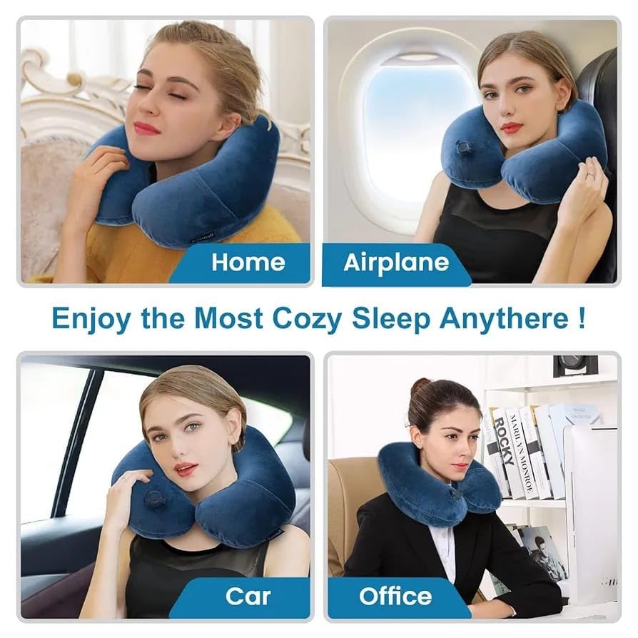 Generic - Inflatable Travel Neck Pillows for Airplanes, Long Flight Sleeping Necessary to Avoid Neck and Shoulder Pain, Comfortably Support Head and Neck for Airplane, Car, Bus, Office