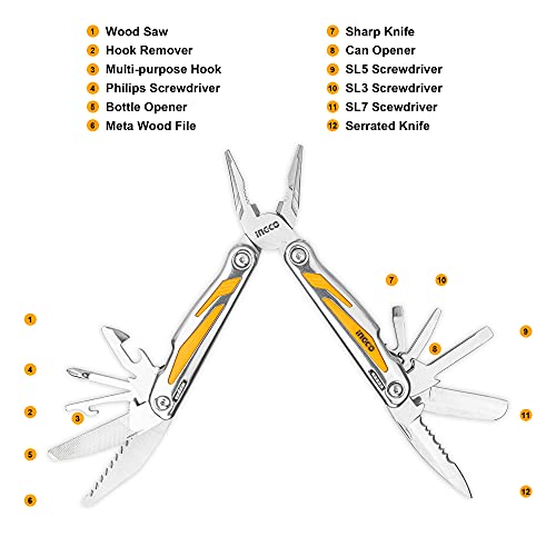 - Handy and Robust: The Whole Body of this INGCO Multitool is made of high hardness stainless stee, which makes the pliers up for a much heavy-duty and harsh environment.
