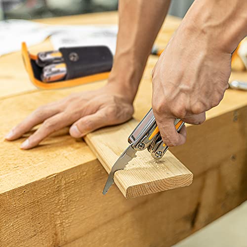 - Multifunctional: A practical foldable 15-in-1 multi-tool: Flat nose Pliers, Regular pliers, Wire Cutters, Sharp cutter, Screwdrivers, Bottle opener, Serrated cutter, Wood Saw, Multi-purpose Hook, Hook remover, Can Opener, Metal/Wood File