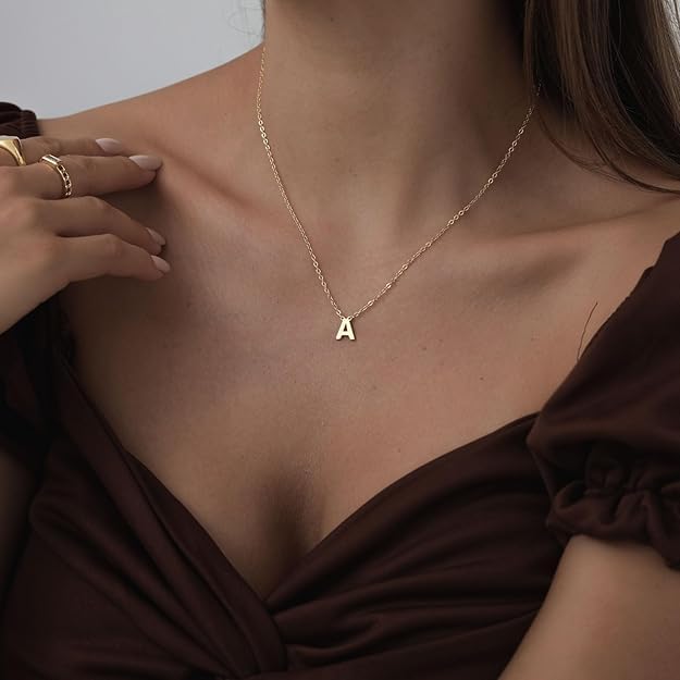 Generic - Initial Letter A Necklace, 18k Gold Plated, 41.9 cm + 5 cm Extension Chain, Hypoallergenic
